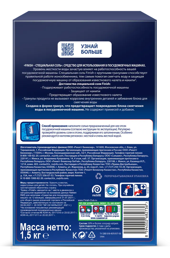 Моющее средство: ФИНИШ Соль защитная 1,5кг для ПММ