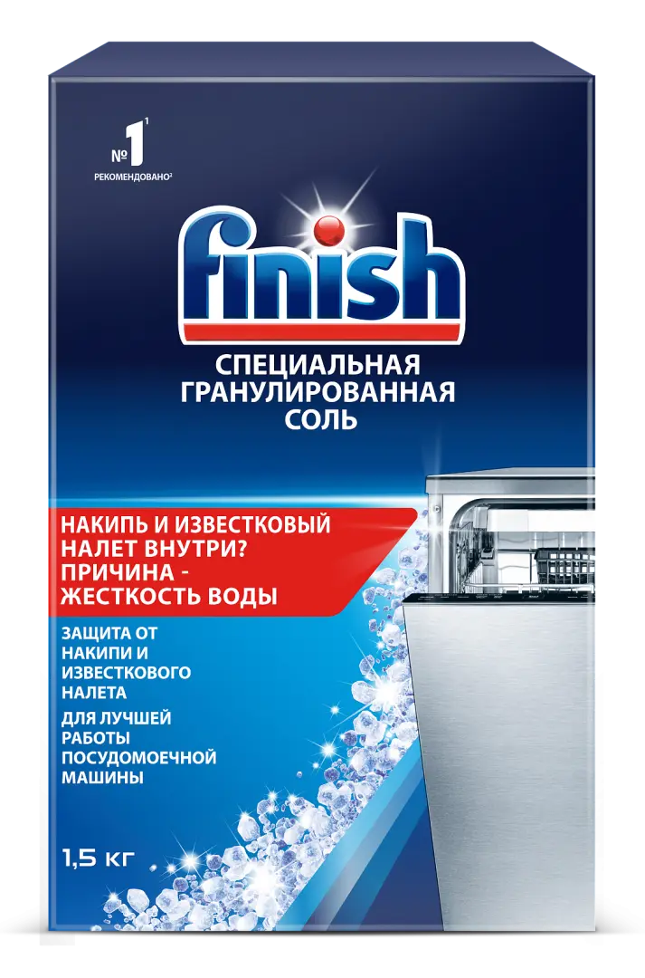 Специальная гранулированная соль Finish для защиты вашей посудомоечной машины от накипи и известкового налета. Для лучшей работы посудомоечной машины.