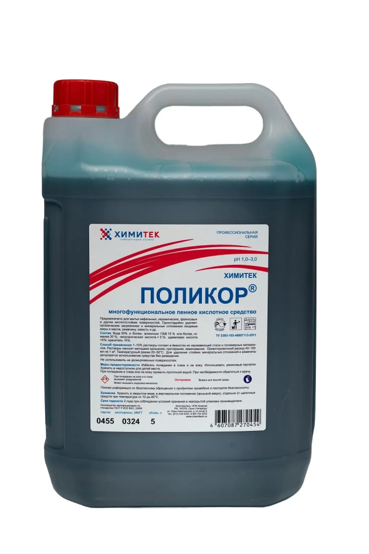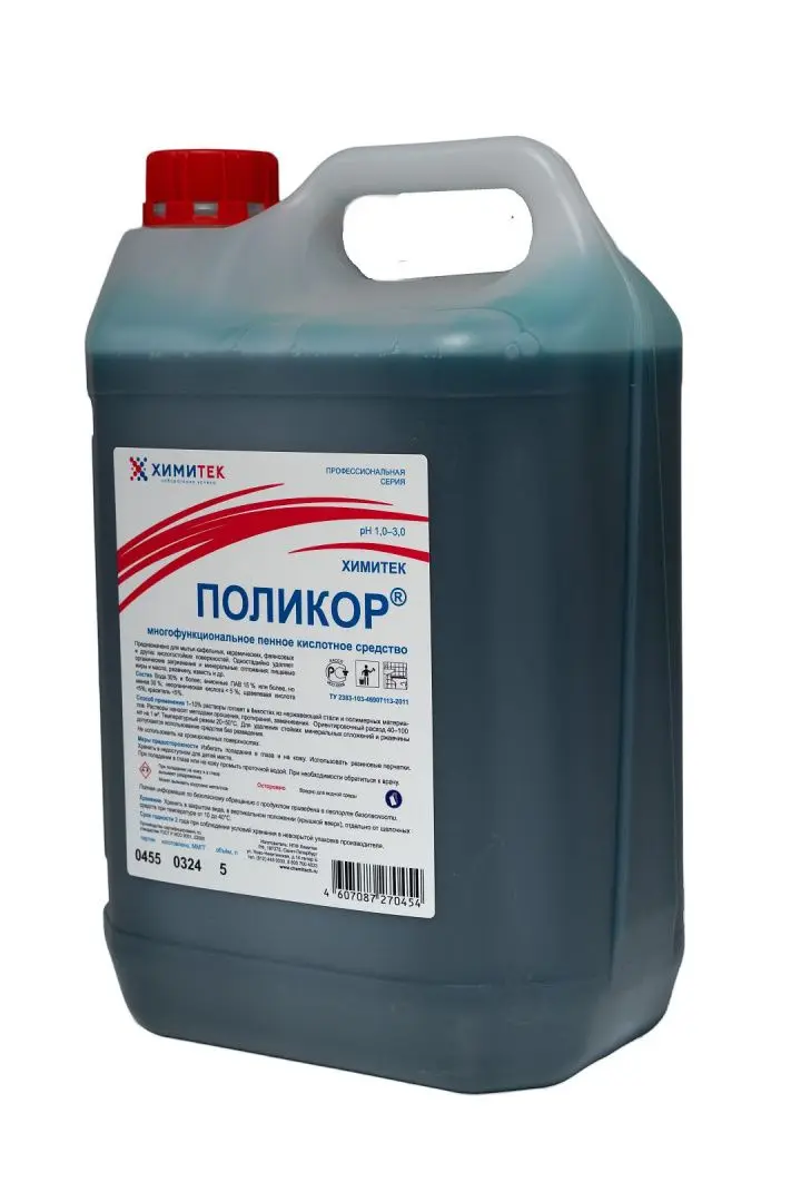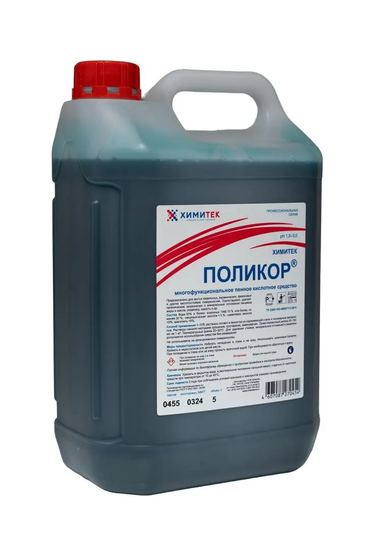 ПолиКор 5л многофункциональное концентрированное жидкое пенное кислотное средство.