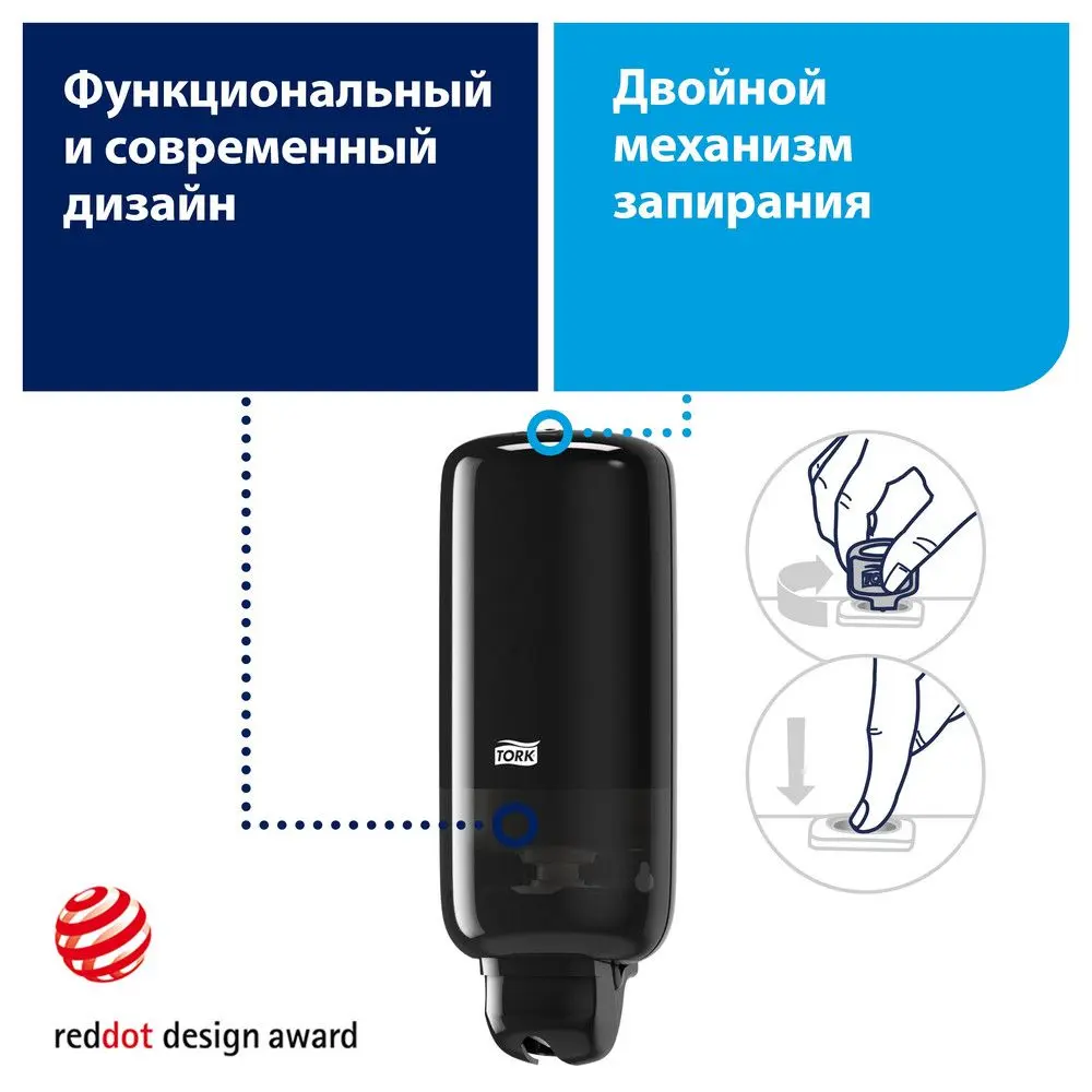 Tork: Диспенсер S1/S11 Elevation 1л для жидкого мыла черный