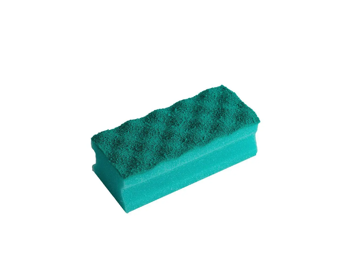 Губка была разработана для удаления сильных загрязнений с деликатных поверхностей, поэтому материал, из которого она изготовлена значительно мягче по сравнению с 'чистящими частичками' входящими в состав зеленого или черного абразива, однако не менее эффективный с точки зрения результата работы.