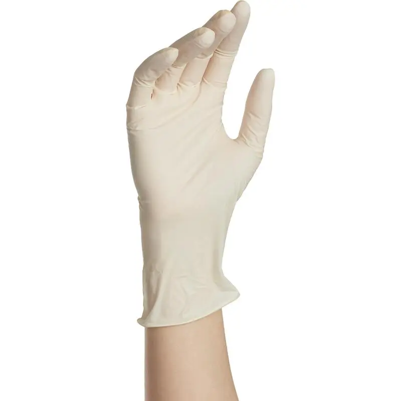 /пач.Перчатки смотровые латексные нестерильные, неопудренные, одинарная хлоринация, текстурированные на пальцах, манжета с валиком, телесного цвета.