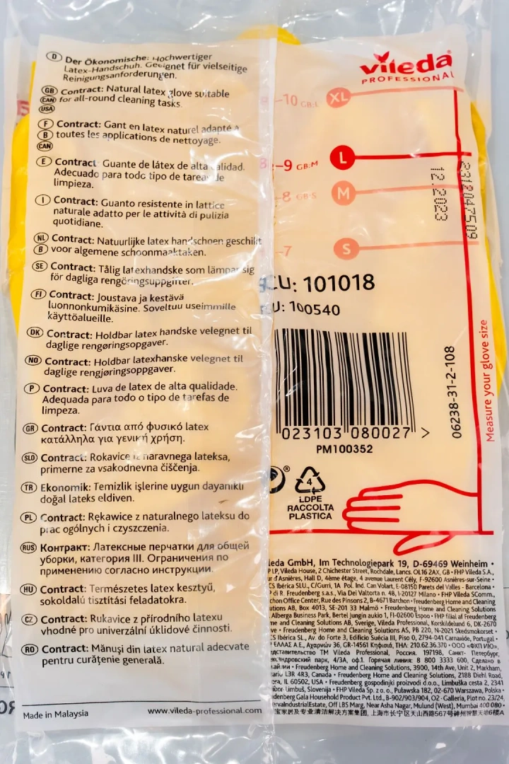 Прочные перчатки Vileda Professional для общей уборки из натурального латекса. Комфортные, с внутренним хлопковым покрытием, эластичные, долговечные. Обеспечивают повышенную чувствительность в области пальцев.