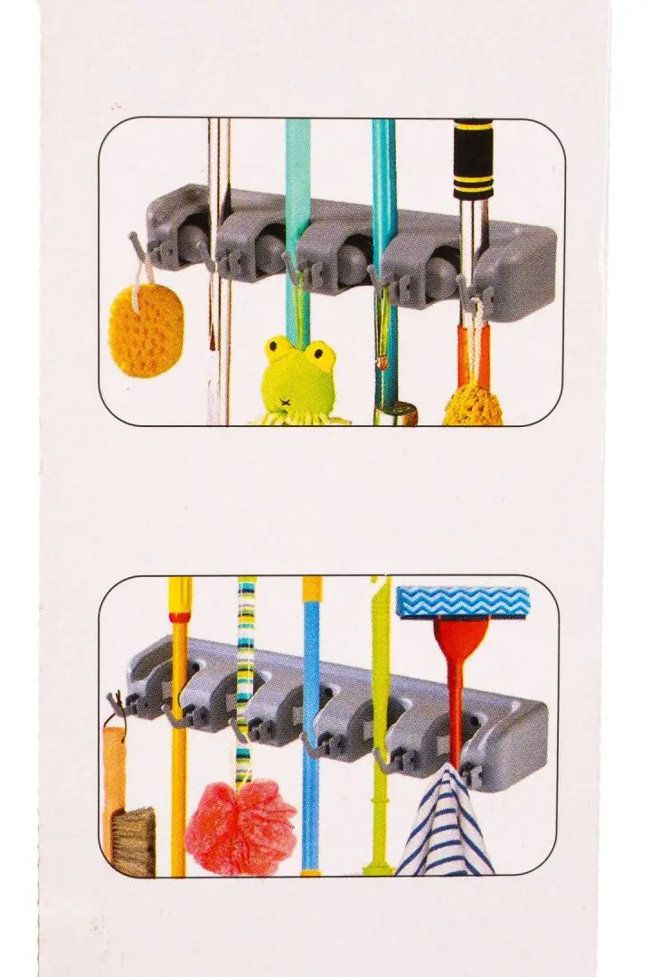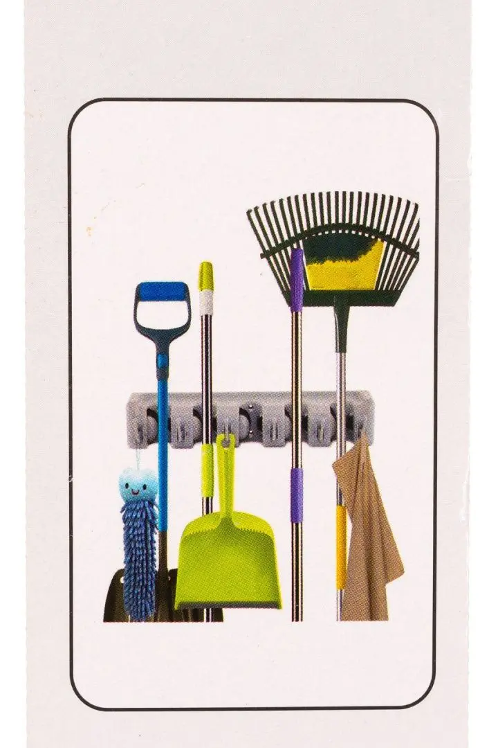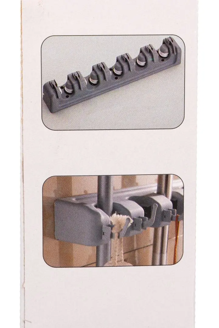 Настенный держатель для инвентаря подходит для швабр, щеток, салфеток, хозяйственного инвентаря.