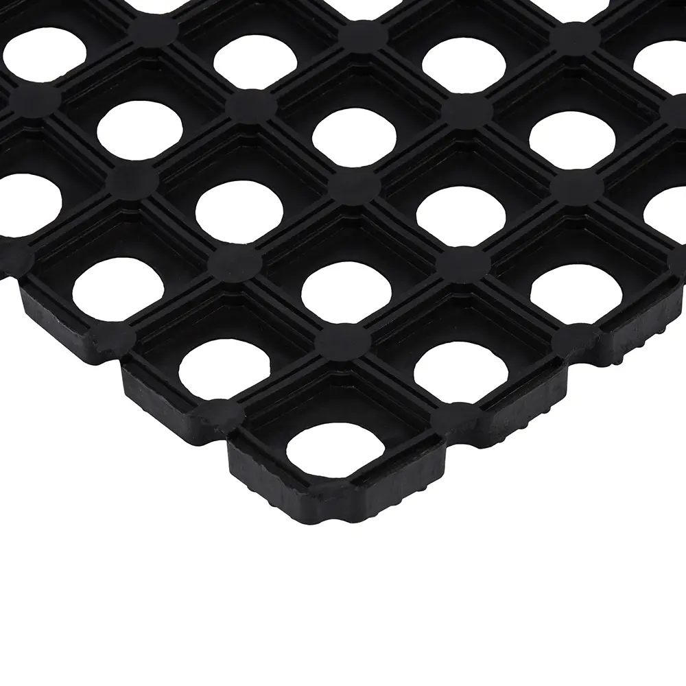 Барьерные коврики изготовлены из качественной резины на основе натурального каучука. Покрытие состоит из сочетания крупных и мелких ячеек, различных геометрических форм, в которых задерживается грязь и снег. С обратной стороны коврики имеют резиновые шипы, которые создают воздушную прослойку между покрытием и полом. Таким образом, грязная вода не накапливается в ячейках. Благодаря все той же ячеистой структуре, данные коврики грязезащитные ячеистые достаточно легкие для того, что бы уборщица могла поднять коврик и убрать под ним накопившуюся грязь.